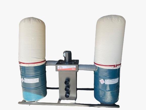 coletor de pó novo, marca Sullmaquinas, modelo CPN-3, motor trifásico de 3cv, sistema exclusivo de baixa emissão de ruídos, 3 entradas de 100mm, 2 tonéis de 200 litros, vazão de 3700m3/h